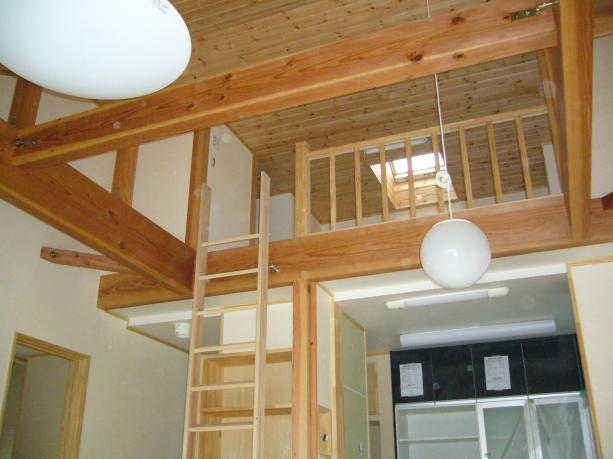 吹抜けの仕上工事中