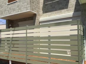 モスグリーンのフェンスにはワンちゃんマークを♪