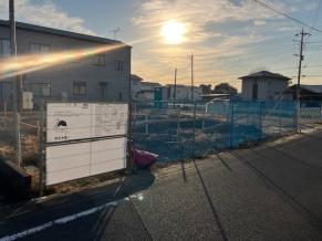着工・遣り方出し完了し新築現場らしいたたずまいに
